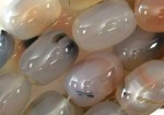 The colors can be White, Gray, Grayish-Blue, Blue, Red, Green, Yellow, Orange, Brown which can be pale brown to almost black, Pink, Purple, Gray, Black, Banded and Multicolored. Sometimes this stone is dyed to create a vibrant colorful piece. Sometimes white Chalcedony is dyed light blue to resemble natural blue Chalcedony. This stone is abundant in the world. The name comes from the Latin name Chalcedonius.
